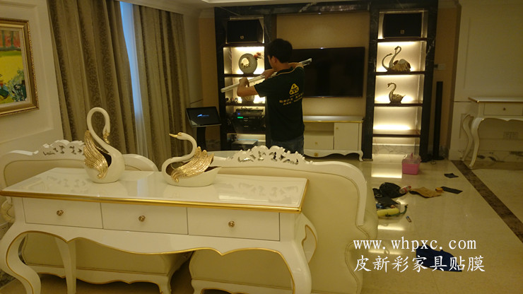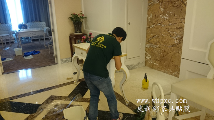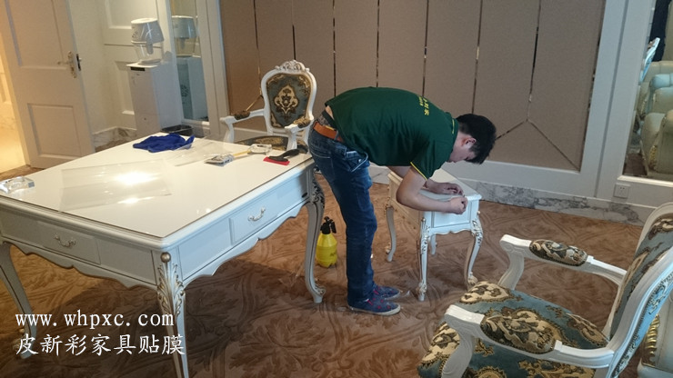 四星級(jí)鐵路匯通酒店,家具維修貼膜工程,這是匯通酒店最大的一間客房,叫總統(tǒng)套房,白色烤漆家具貼透明膜,貼完膜之后比烤漆還亮,皮新彩家具貼膜13995508166