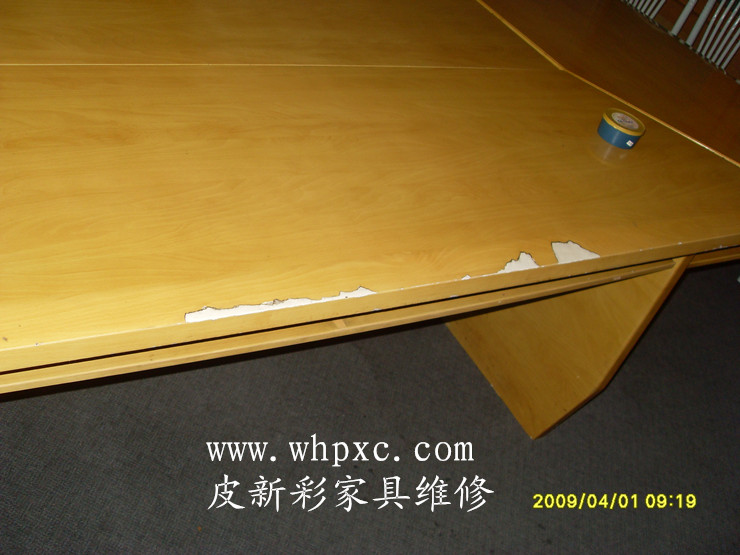 貼紙家具維修,貼紙家具容易起泡維修把起泡的鏟掉,不要擴(kuò)大面積,再刮灰打磨、打膠上色,做紋、再做面漆就行了,皮新彩家具維修熱線13995508166