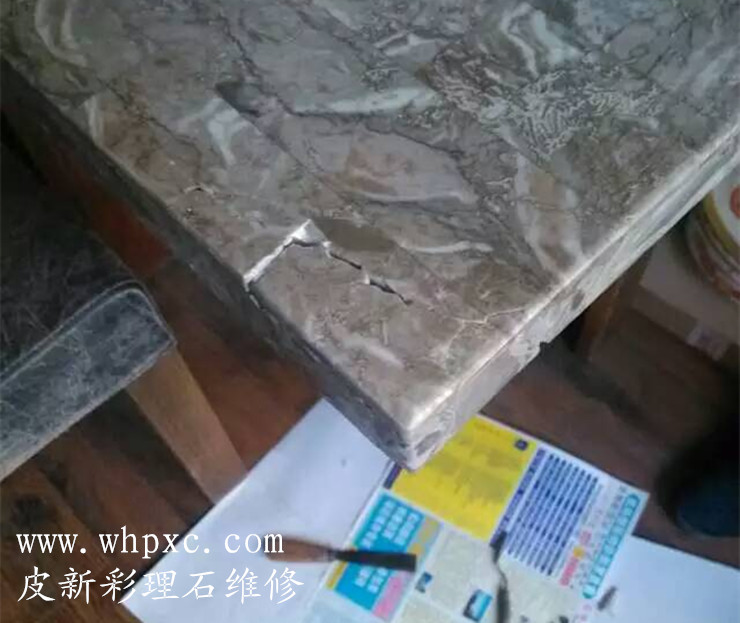 大理石維修,這種理石表面沒(méi)有做油漆,破碎以后我們可以用理石漆或云石膠一塊一塊粘好,再把有缺口的地方填平,可以用云石膠加色粉調(diào)色,無(wú)需拋光,皮新彩大理石維修13995508166 [詳情]