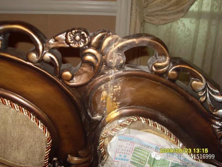 下圖小面積脫漆起皮用水性面漆調(diào)金銀粉維修更簡單,水性面漆上完色后要在表面噴自噴面漆封固