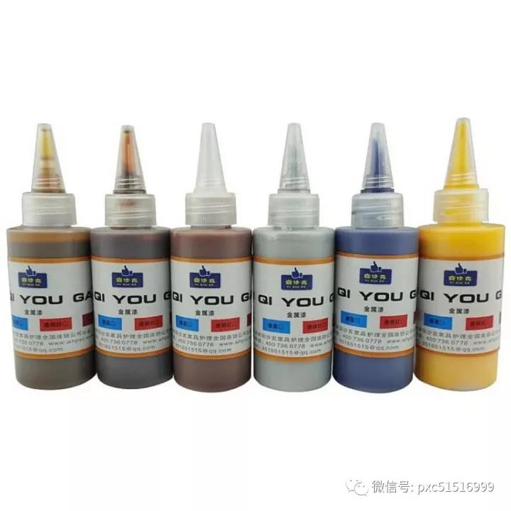 下面依次是金屬漆,珠光膏,水性面漆,珠光粉,大面積用金屬漆修,小面積用水性面漆加珠光粉,線條或描畫用珠光膏,金屬漆可以加油膏調(diào)色,水性面漆和珠光膏可以加水性色漆調(diào)色。